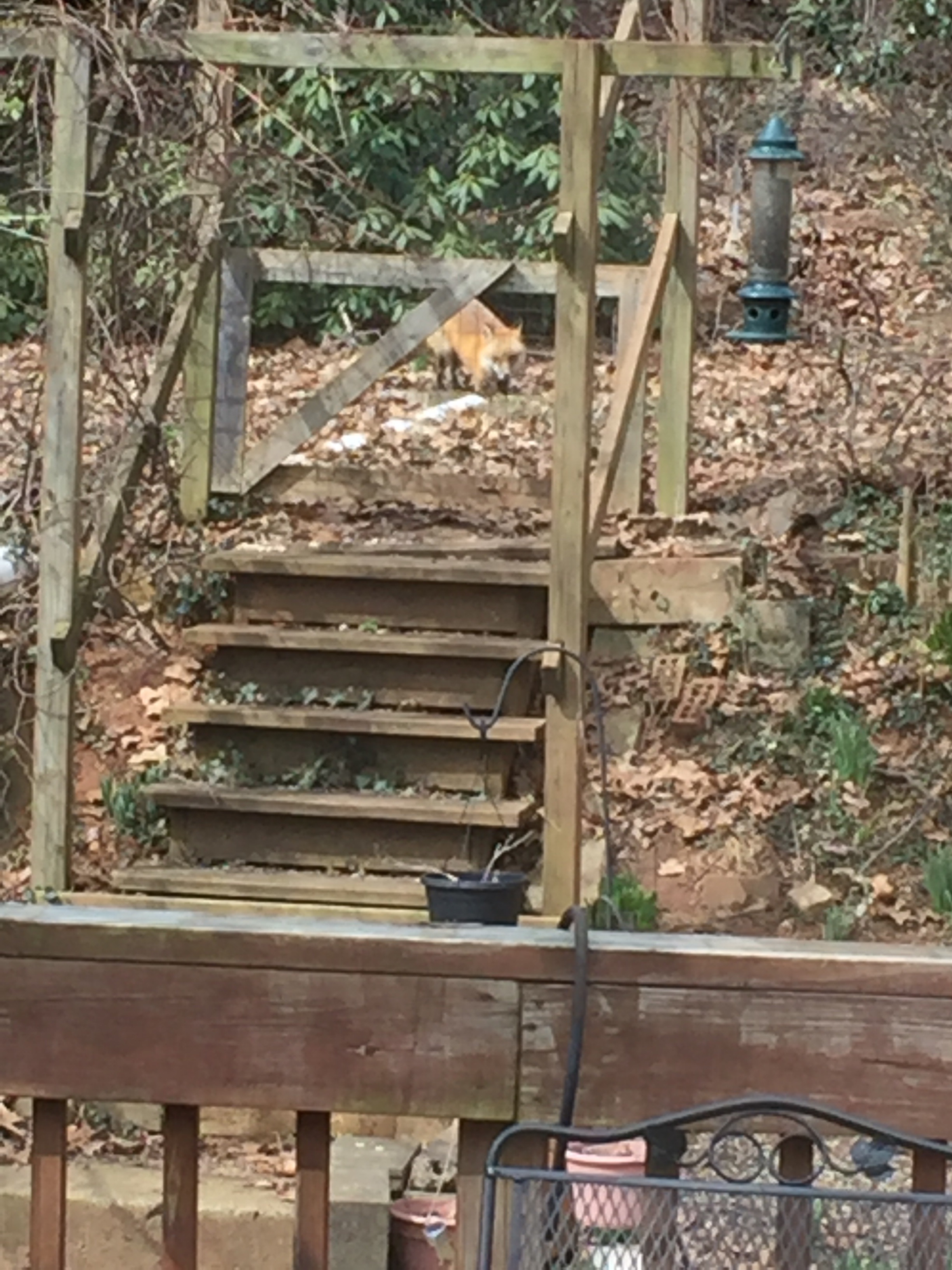 2 – Mr. Fox came to pay us a visit. He has been making a regular appearance just to remind me that I cannot have backyard chickens. Oh, no I can’t! There were also reports of a possibly rabid fox in the north end of town biting people and stealing scarves. Our fox does not sport a scarf so, he does not have rabies.